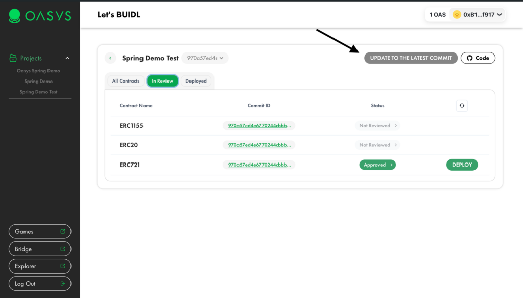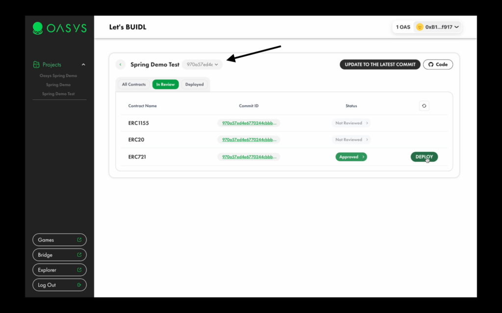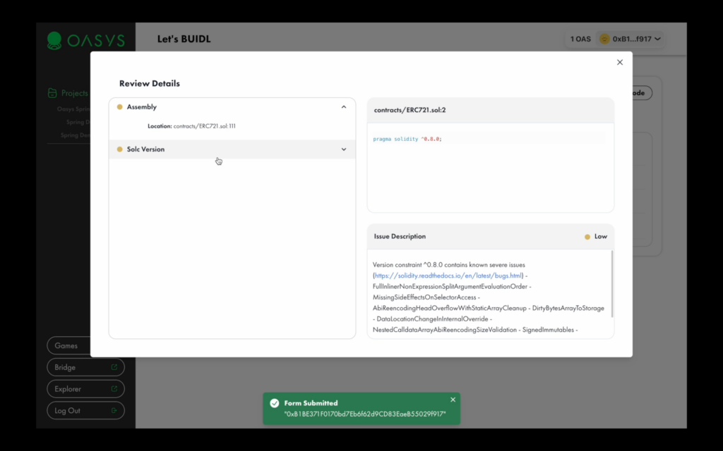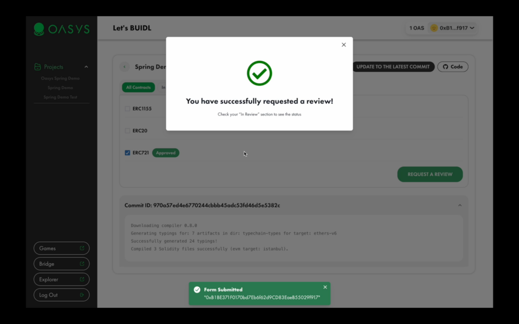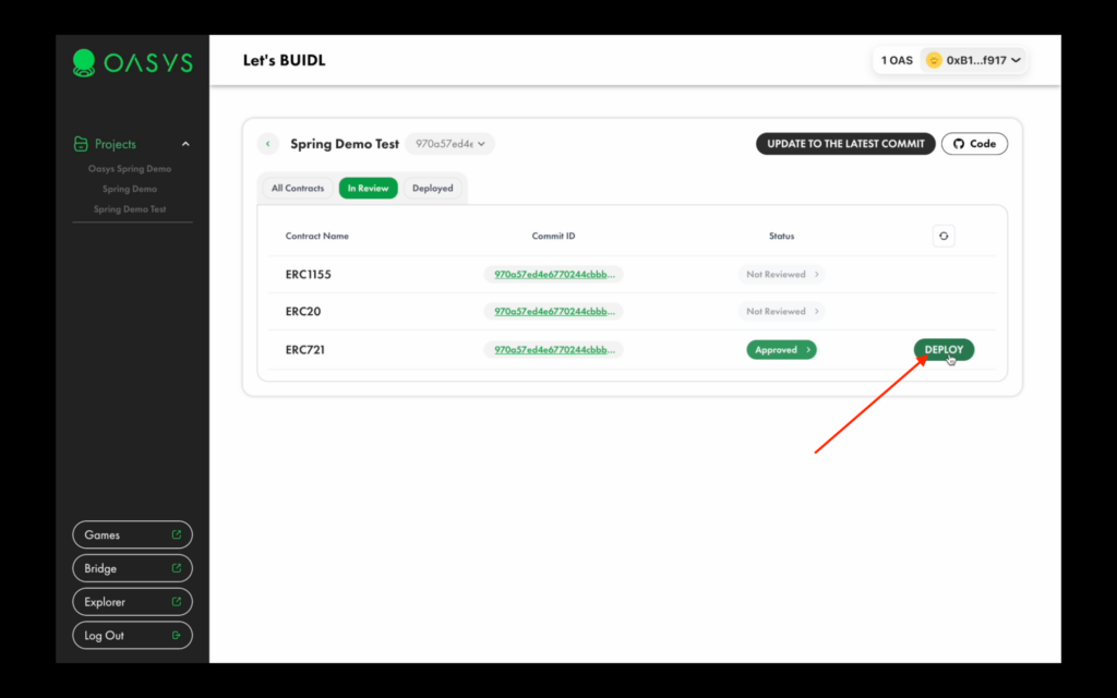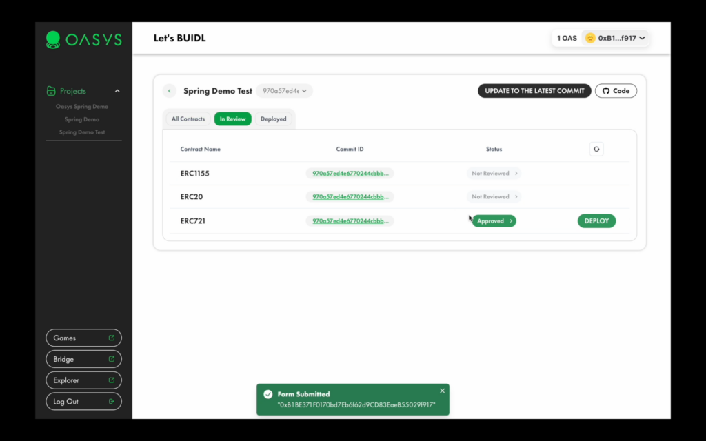 Upon successful review, your contracts will have the “approved” tag, which means you can proceed with deploying your application on the Oasys Dev chain.