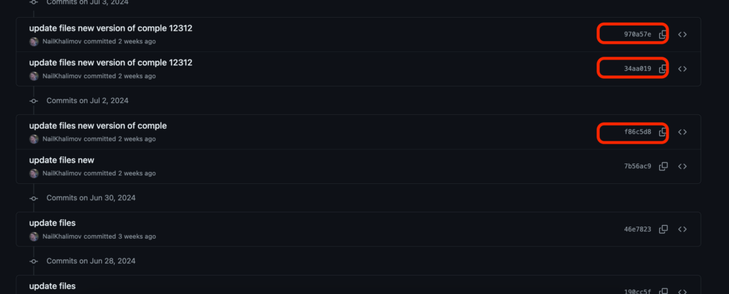 Here is an example of commit hashes: